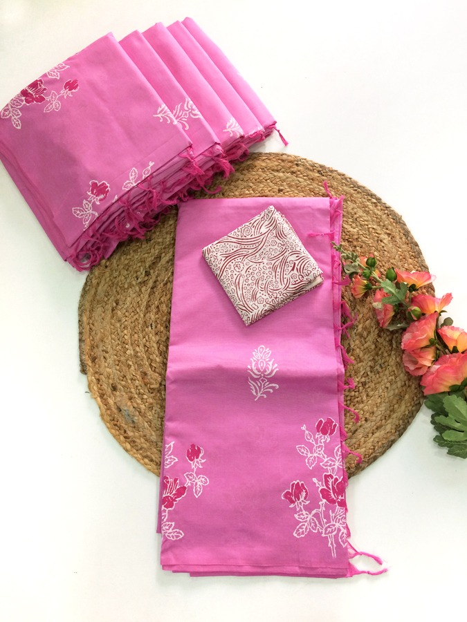 South Cotton Mix Sarees (Pink with white)