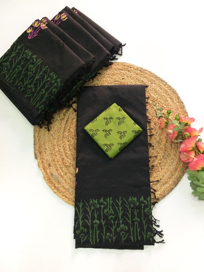 South Cotton Mix Sarees(black with green)